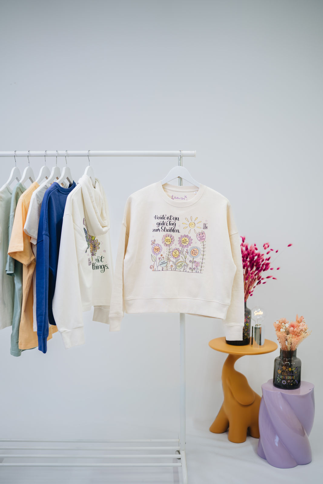 Alle unsere Produkte verbreiten Fröhlichkeit, Glück, Positivität und ganz viel Farbe. Sie werden mit Liebe hergestellt und auf Nachhaltigkeit und Ressourcenschonung wird viel Wert gelegt.