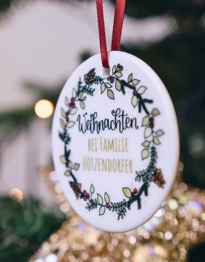 Keramikhänger "Weihnachten bei Familie..." mit Wunschname