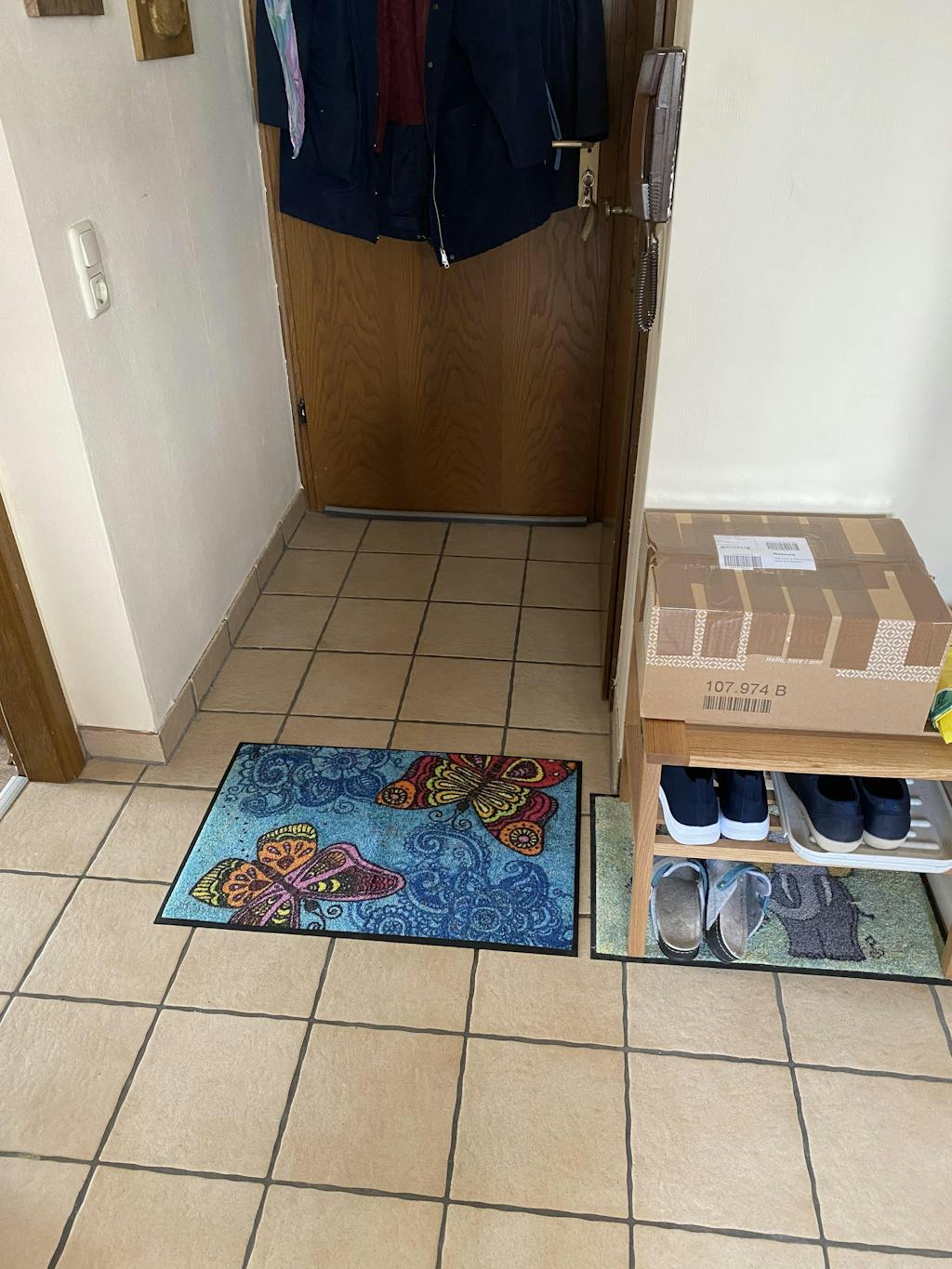 - Alternativ kannst du die Fußmatte auch flachliegend am Boden oder auf einem Wäscheständer zum Trocknen auslegen.