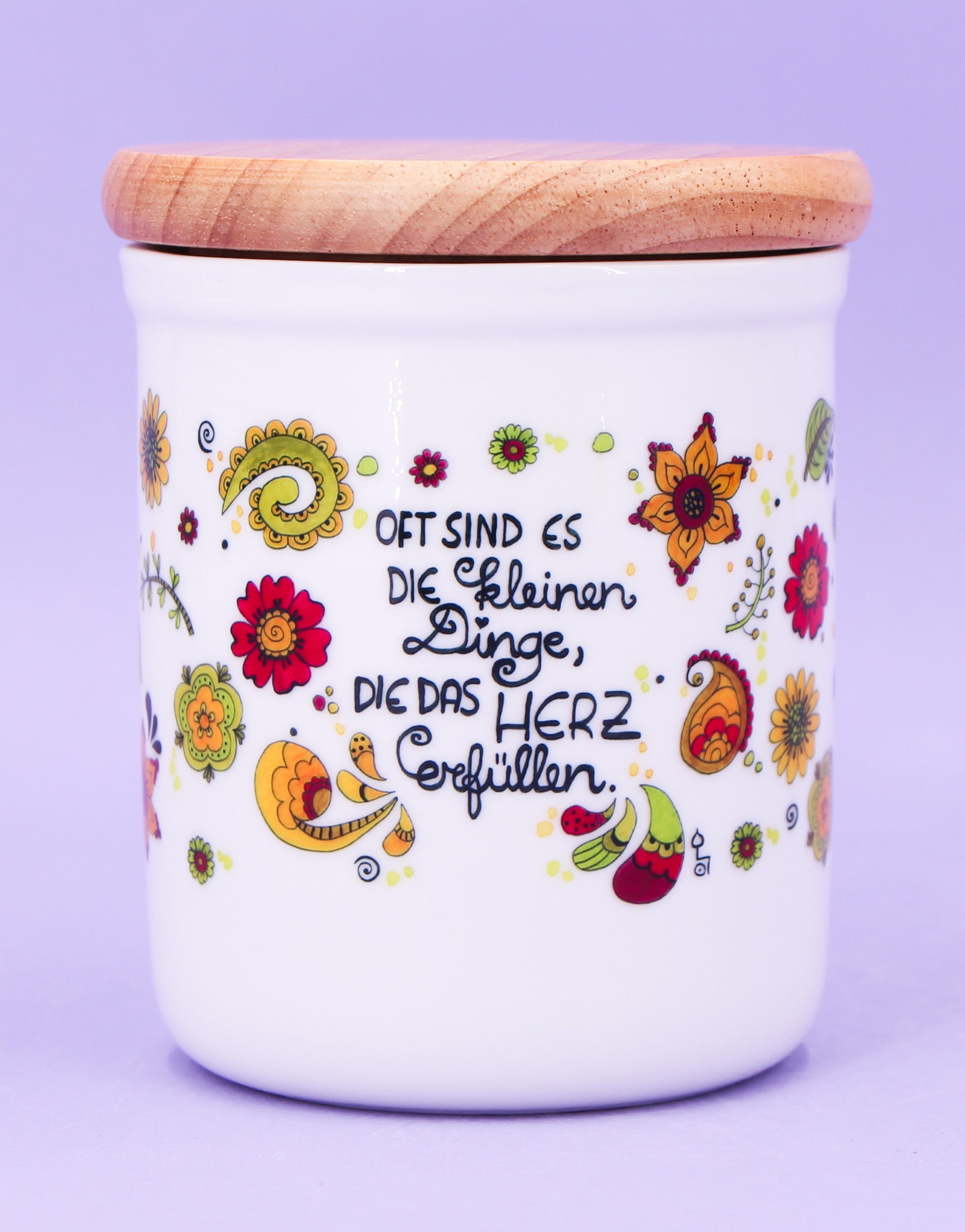 Keramikdose klein mit Holzdeckel "Die kleinen Dinge"