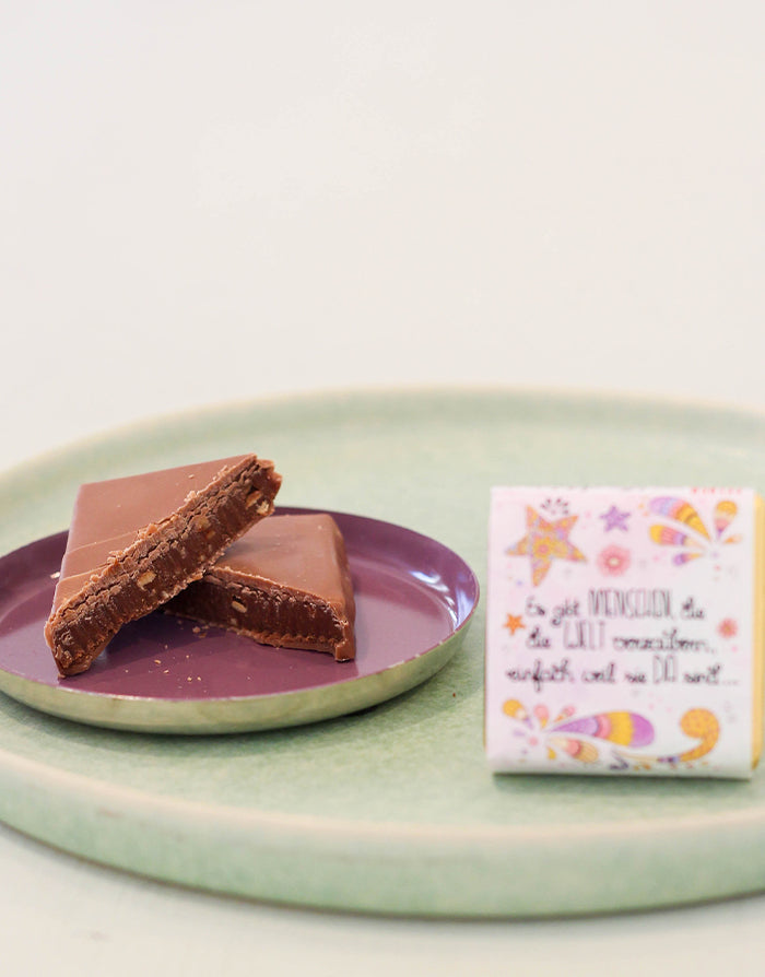 Dieses kleine Schokoladentäfelchen versüßt einem auf jeden Fall den Tag und ist ein ganz besonderer Geschenketipp, der Freude verbreitet und noch dazu köstlich schmeckt. In sorgfältiger Handarbeit in Österreich hergestellt. Feinste Schokolade gefüllt und veredelt mit dem Besten, was uns die Natur schenkt.