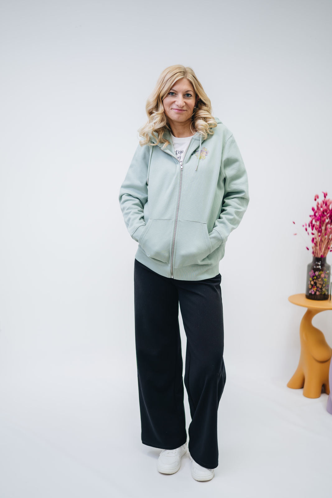 Leichtigkeit, Freiheit und Naturverbundenheit – genau das verkörpert unser Damen Zipper Hoodie „Kolibri“. Auf der Brust findet sich ein dezenter, detailreicher Print aus floralen Elementen und einem Kolibri, während die Rückseite mit dem großen Design-Highlight überzeugt: „Collect moments, not things“ – eingerahmt von Kolibri, Blumen und liebevollen Ornamenten. Ein Statement, das dich begleitet und inspiriert.