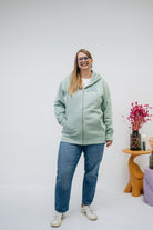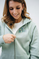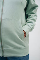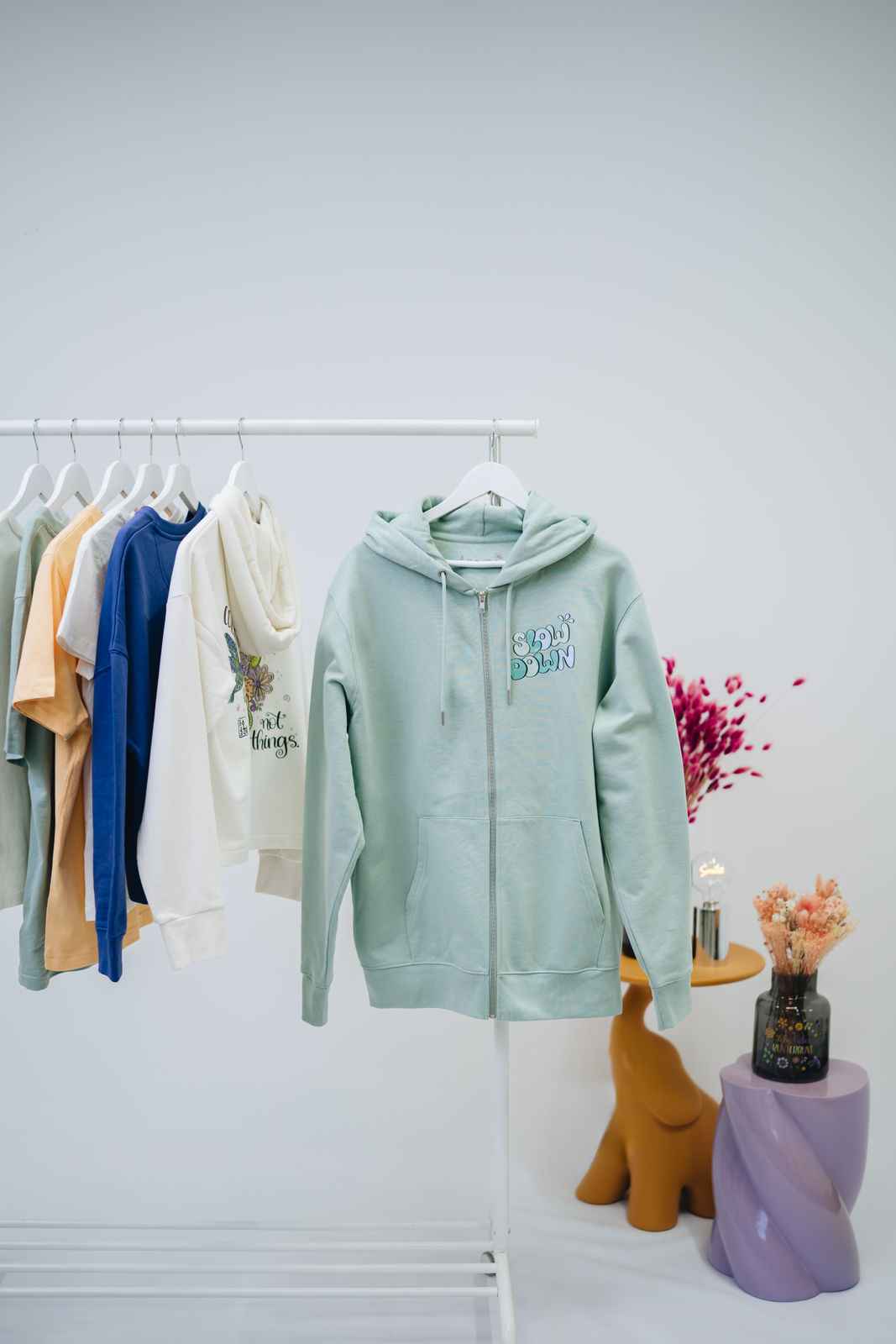 Der Hoodie ist aus 100 % Bio-Baumwolle gefertigt (350 g/m², GOTS-zertifiziert) und überzeugt durch seine hochwertige Verarbeitung: aufgeraute Innenseite, doppellagige Kapuze, robuster Metallzipper und klassische Kängurutaschen. Der mintgrüne Farbton sorgt für einen frischen, modernen Look – perfekt für Freizeit, Reisen oder gemütliche Tage.