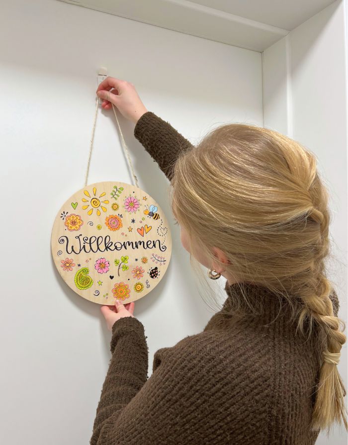 ✔ Holz-Türschild „Willkommen“
