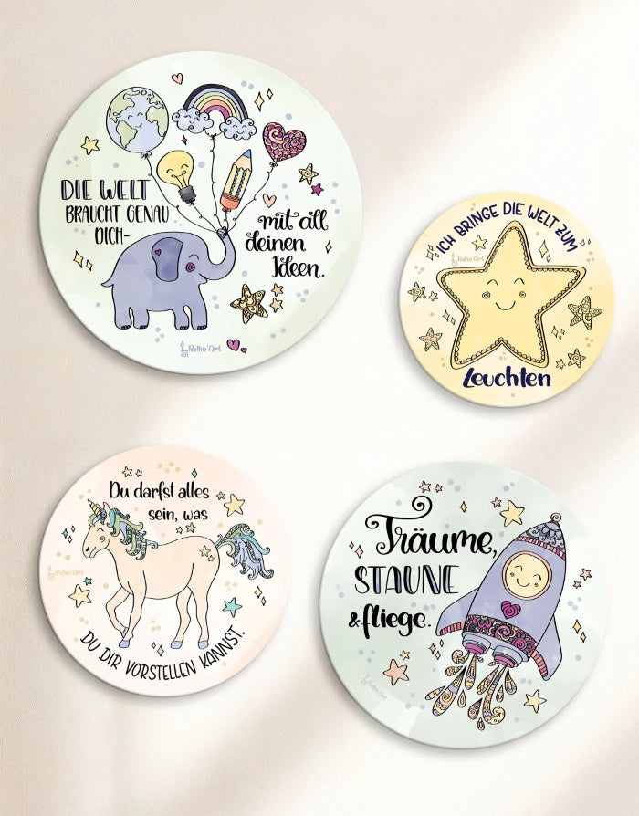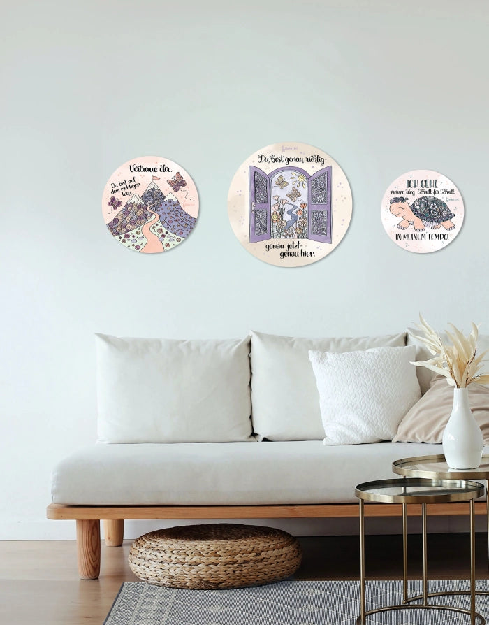 Leicht, liebevoll gestaltet und einfach anzubringen, begleiten sie durch den Alltag und schaffen Räume voller Zuversicht, Leichtigkeit und Gefühl.