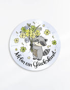 Der kleine Waschbär mit seinem Kleeblumenstrauß steht für Glück, Dankbarkeit und das Vertrauen, dass das Leben es gut meint.