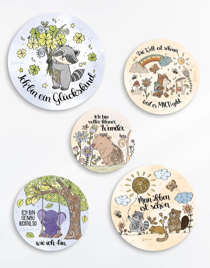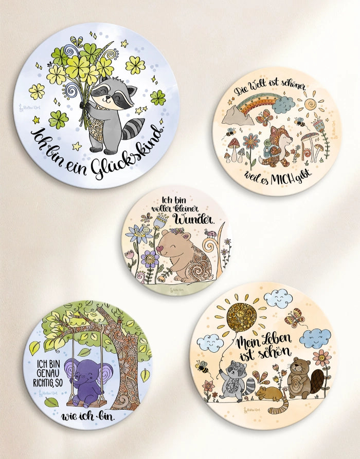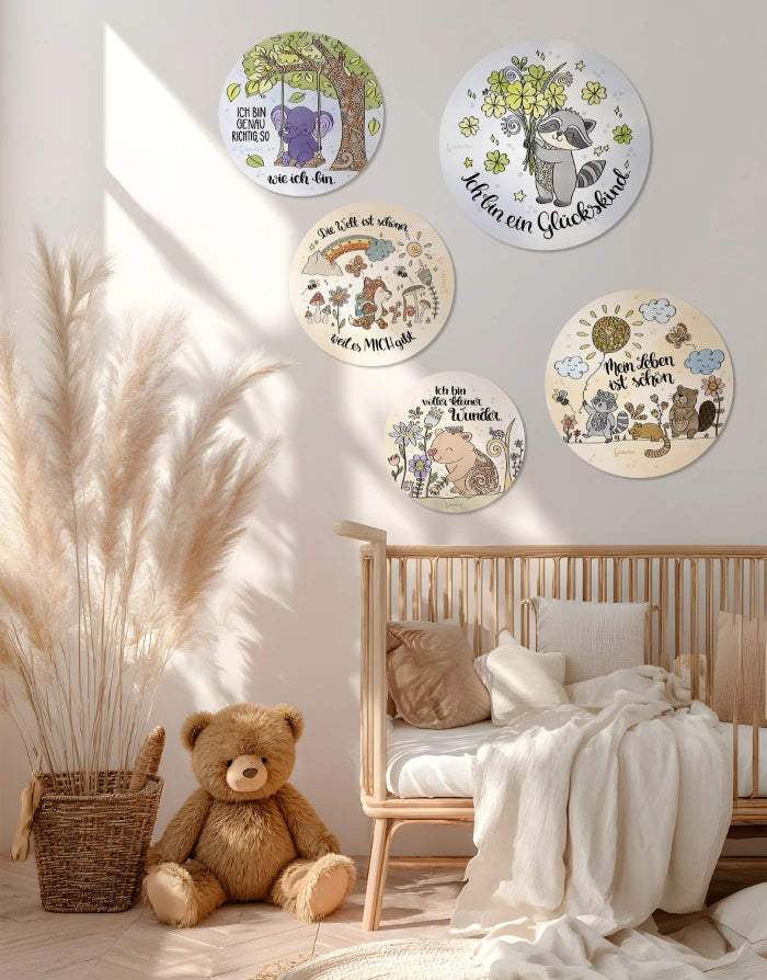 Die verspielten Tiermotive, sanften Farben und stärkenden Worte schaffen eine Umgebung, in der Kinder sich sicher, gesehen und bestärkt fühlen dürfen.