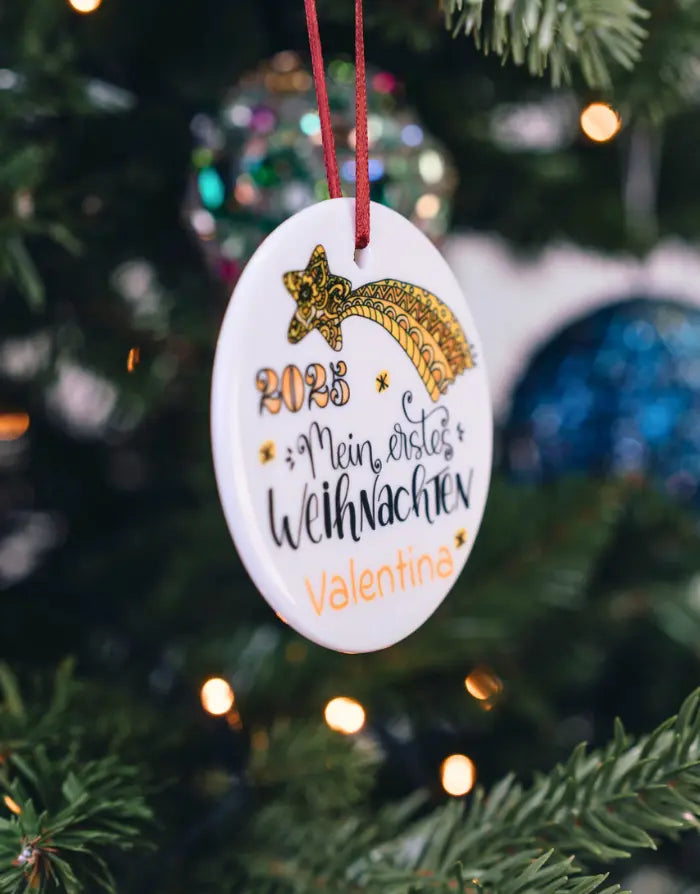 Ob als Geschenk oder für den eigenen Baum – dieser Keramikhänger bringt nicht nur weihnachtliche Freude, sondern bewahrt die Erinnerungen an das erste Weihnachten deines Kindes für immer.