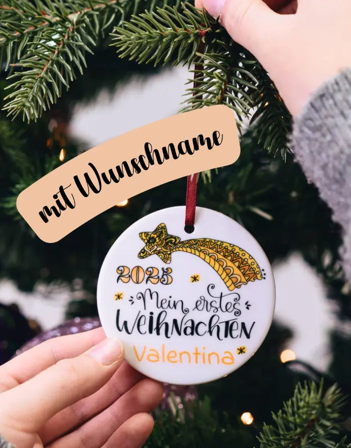 Keramikhänger "Erstes Weihnachten - Sternschnuppe" mit Wunschname