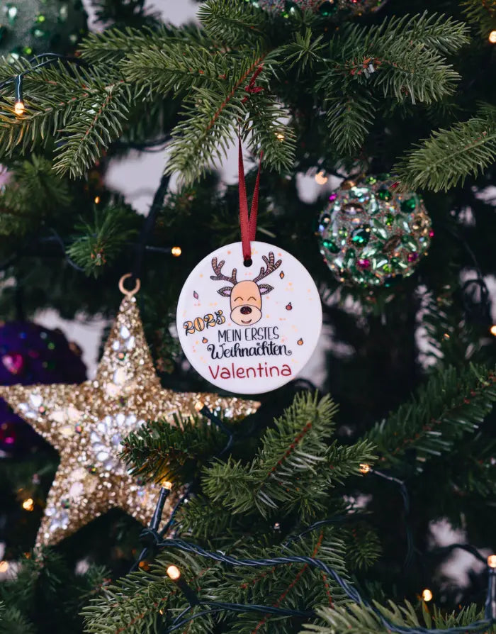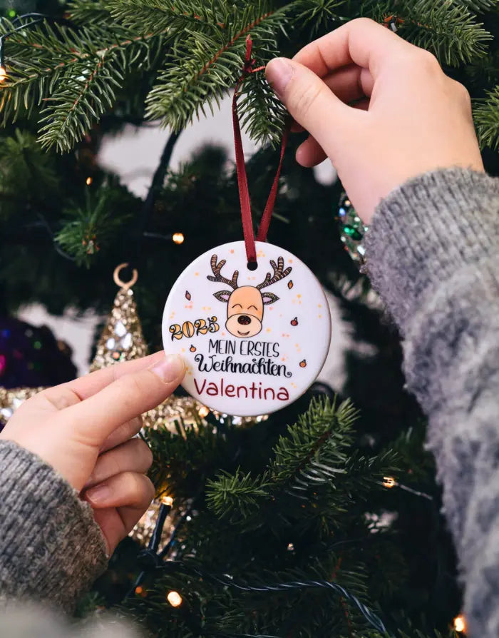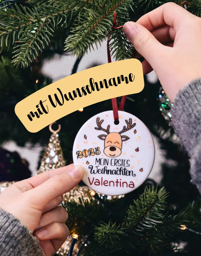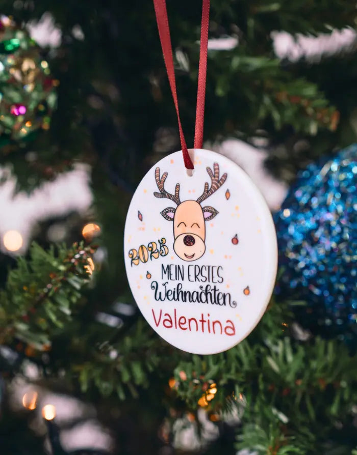 Keramikhänger "Erstes Weihnachten - Rentier" mit Wunschname