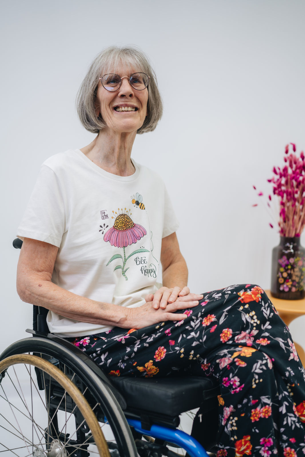 - Motiv: Blume mit Biene & Schriftzug „Bee happy“