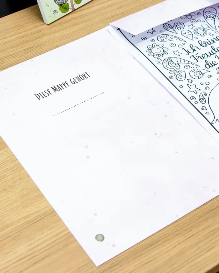 Die drei Innenlaschen schützen deine Unterlagen zuverlässig vor dem Herausfallen, und der Magnetverschluss hält alles sicher zusammen. So wird diese Sammelmappe zum fröhlichen Begleiter für deinen Tag – und zum bunten Glücksbringer in Papierform. 💛