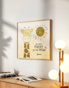 Die fröhliche Giraffe mit ihren warmen Farben und verspielten Details steht für Einzigartigkeit, Leichtigkeit und Selbstannahme. Als hochwertiger Kunstdruck bringt dieses Poster positive Energie, Geborgenheit und ein gutes Gefühl in dein Zuhause – perfekt für Kinderzimmer, Wohnräume oder als liebevolles Geschenk.