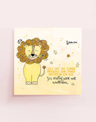 Der fröhliche Löwe mit seiner floralen Mähne steht für Stärke, Selbstvertrauen und Lebensfreude. Die warmen Farben und die ermutigenden Worte machen diesen Kunstdruck zu einem täglichen Mutmacher – für Kinder wie für Erwachsene.