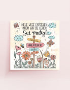 Der Wegweiser mit seinen sanften Botschaften steht für Entscheidungen, Vertrauen und die Freiheit, dem eigenen Herzen zu folgen. Zwischen Blumen, Schmetterlingen und kleinen Details entfaltet sich eine positive, hoffnungsvolle Stimmung, die Mut macht und Zuversicht schenkt.
