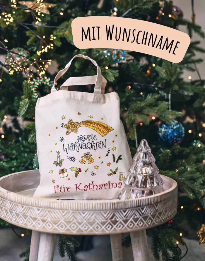 - Design: Handbedruckt mit einem zauberhaften Weihnachtsmotiv und deinem Wunschnamen