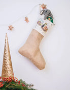 Der Stiefel aus natürlichem Jutestoff ist groß genug, um ihn mit Süßigkeiten, Nüssen, Mandarinen, kleinen Spielsachen oder anderen Aufmerksamkeiten zu füllen. Dank der praktischen Baumwollschlaufe lässt er sich perfekt an Kaminsimsen, Türen oder Wänden aufhängen und sorgt für weihnachtliche Stimmung.