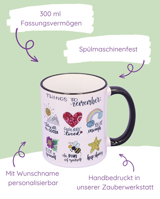Die fröhlichen, inspirierenden und kunterbunten Motive sind alle handgezeichnet und machen unsere Produkte dadurch so einzigartig.