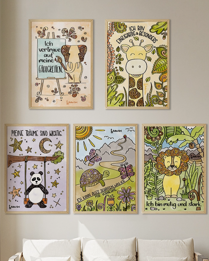 The cheerful, inspiring and colorful designs are all hand-drawn, making our products so unique.