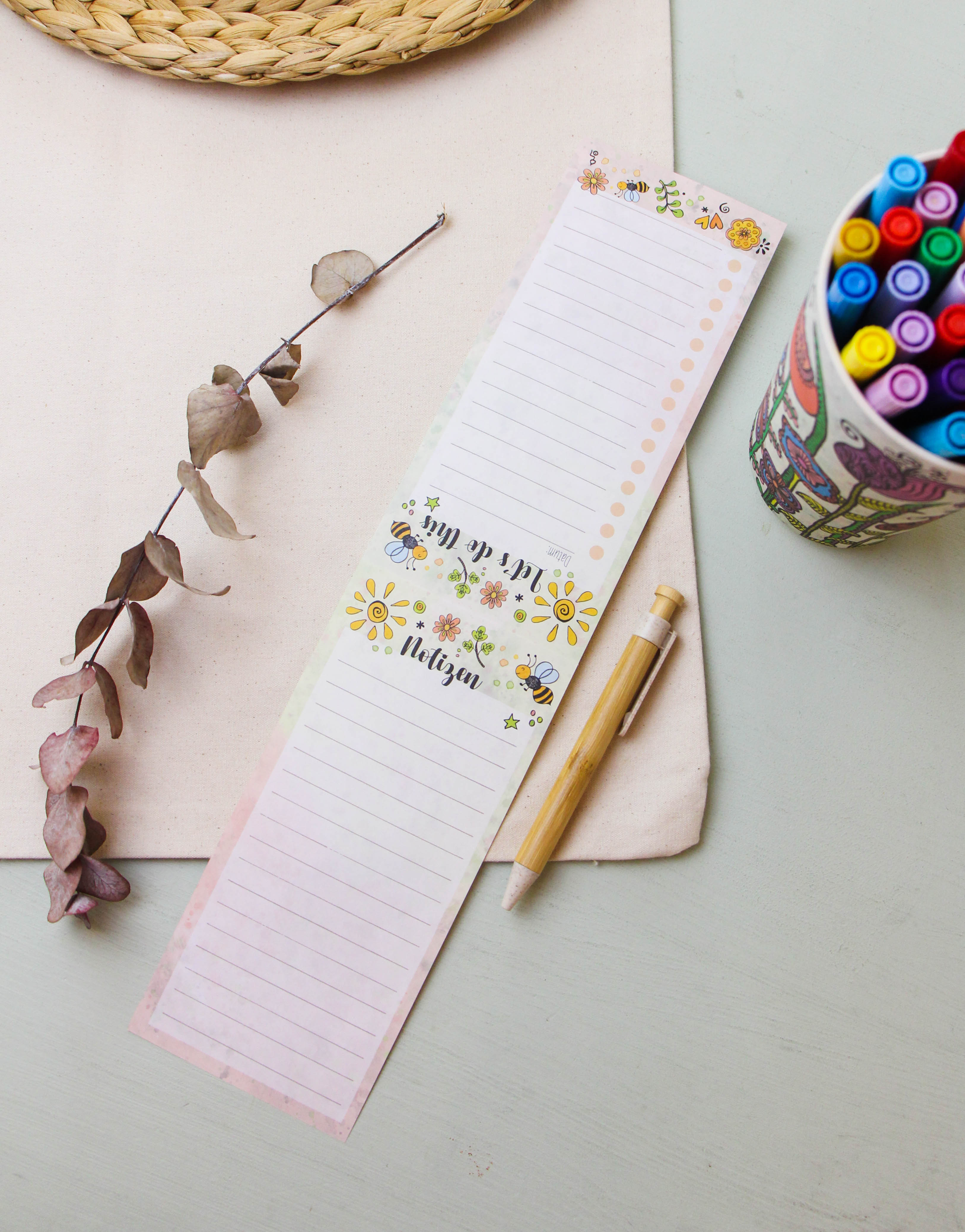 The pad has 50 sheets and was printed on white 80g offset paper. The leaves are glued together at the top and can be easily torn off. The back is also printed - you can take notes here.