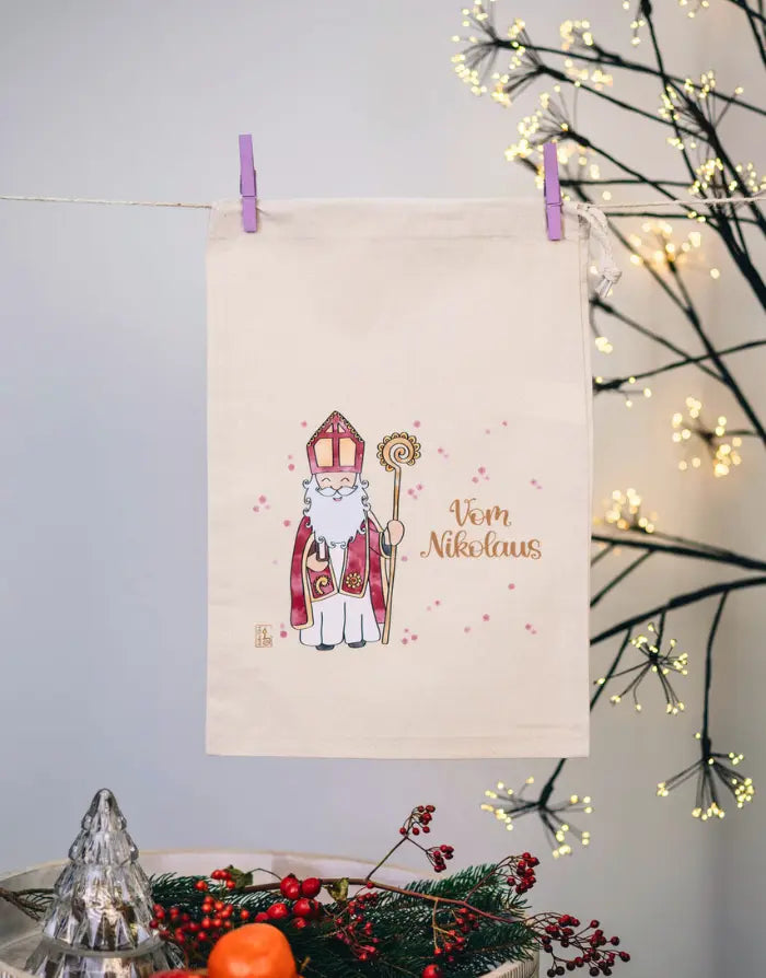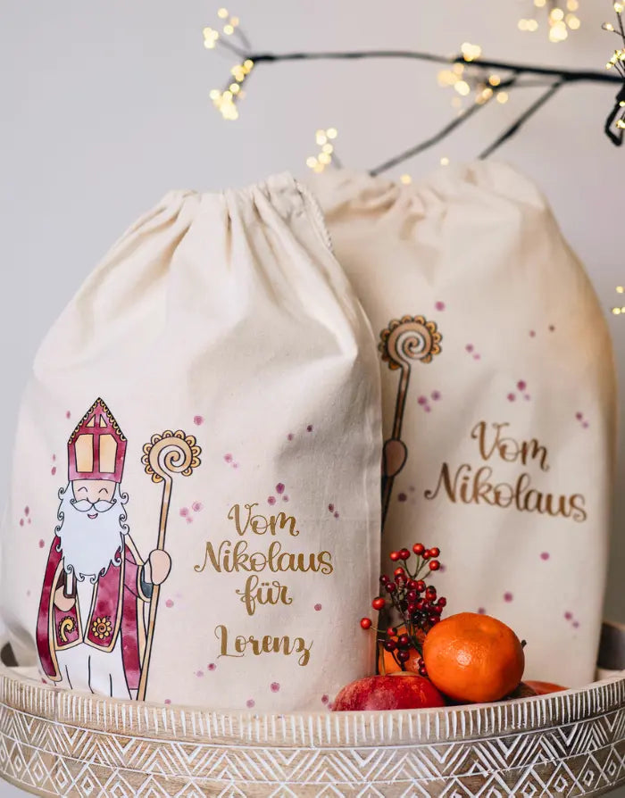 - Design: Handbedruckt mit einem zauberhaften Nikolaus-Motiv und optional personalisierbar mit deinem Wunschnamen